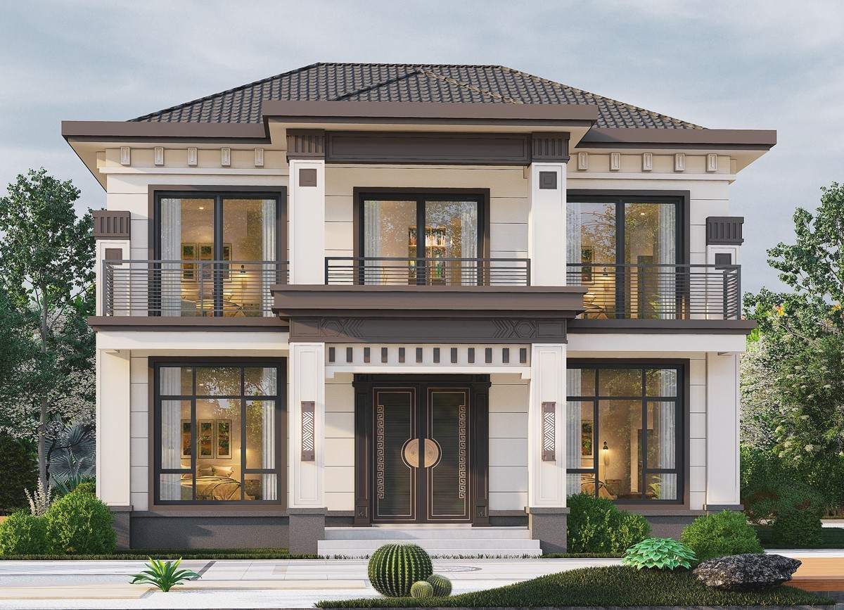 绍兴011 两层新中式(15.43x12.66米)-【易设计】
